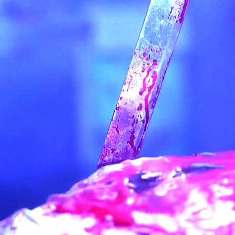 Stabbed in abdomen repeatedly and slashed in back until bled out